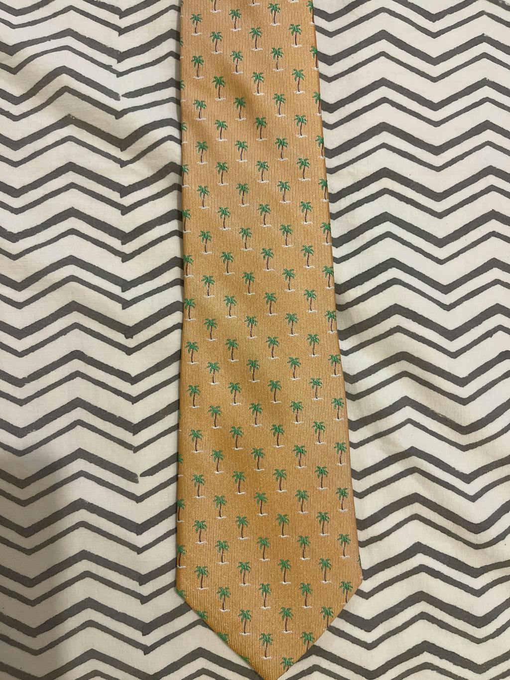 Pair this necktie with a crisp white or light grey shirt to highlight the Orange tree design. A tailored beige or brown suit complements the soft hues of the pattern, making it perfect for business casual settings, garden parties, or stylish daytime events.
